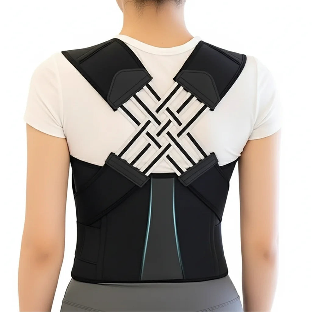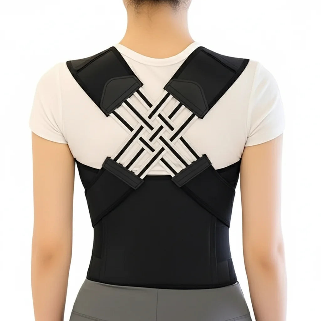 Son design intelligent avec sangle ajustable et motif croisé guide doucement tes épaules vers l'arrière, alignant ta colonne vertébrale pour corriger le dos rond et te donner une allure plus droite et élégante.
