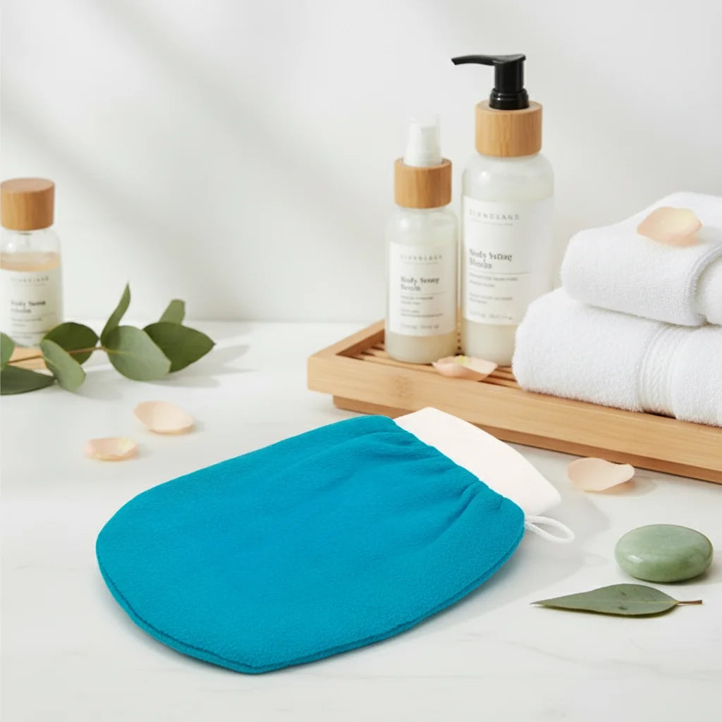 Laissez tomber les gommages qui s'épuisent vite ! Notre gant offre une exfoliation mécanique profonde et incroyablement efficace, sans gaspiller de produit. C'est l'expérience spa luxueuse et zéro déchet, pour une peau parfaite à chaque utilisation.